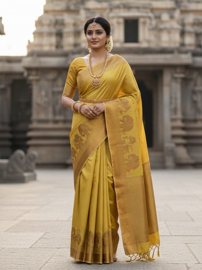 Elephant Design Semi Kanjipuram Soft Silk Sarees Wrap yourself in timeless elegance with our Premium Quality...